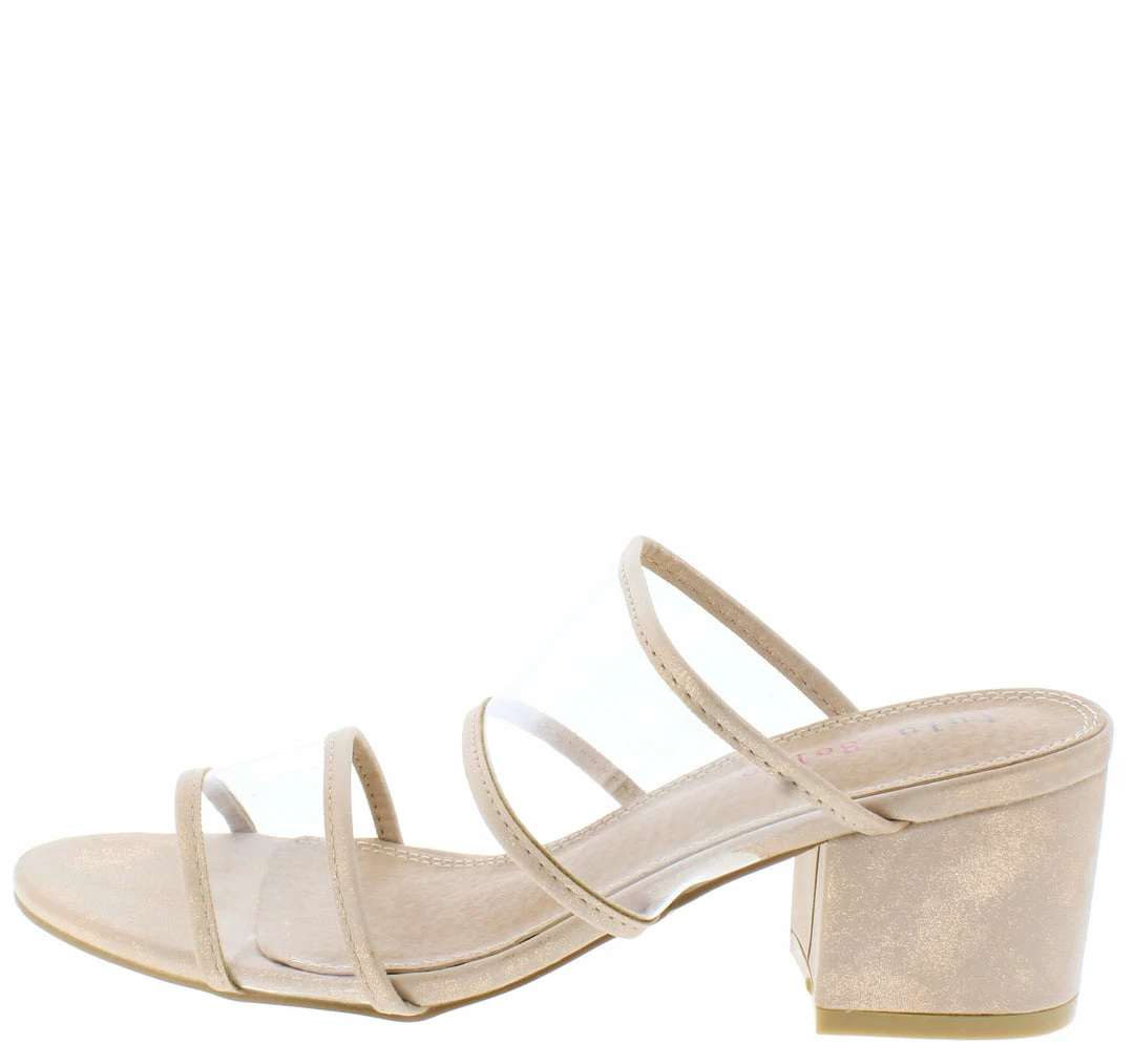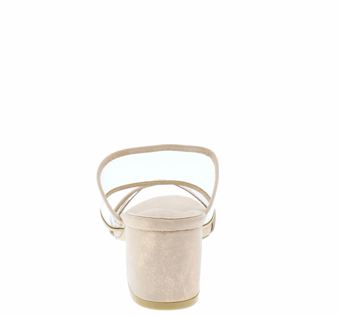 - A lined lucite dual strap upper.