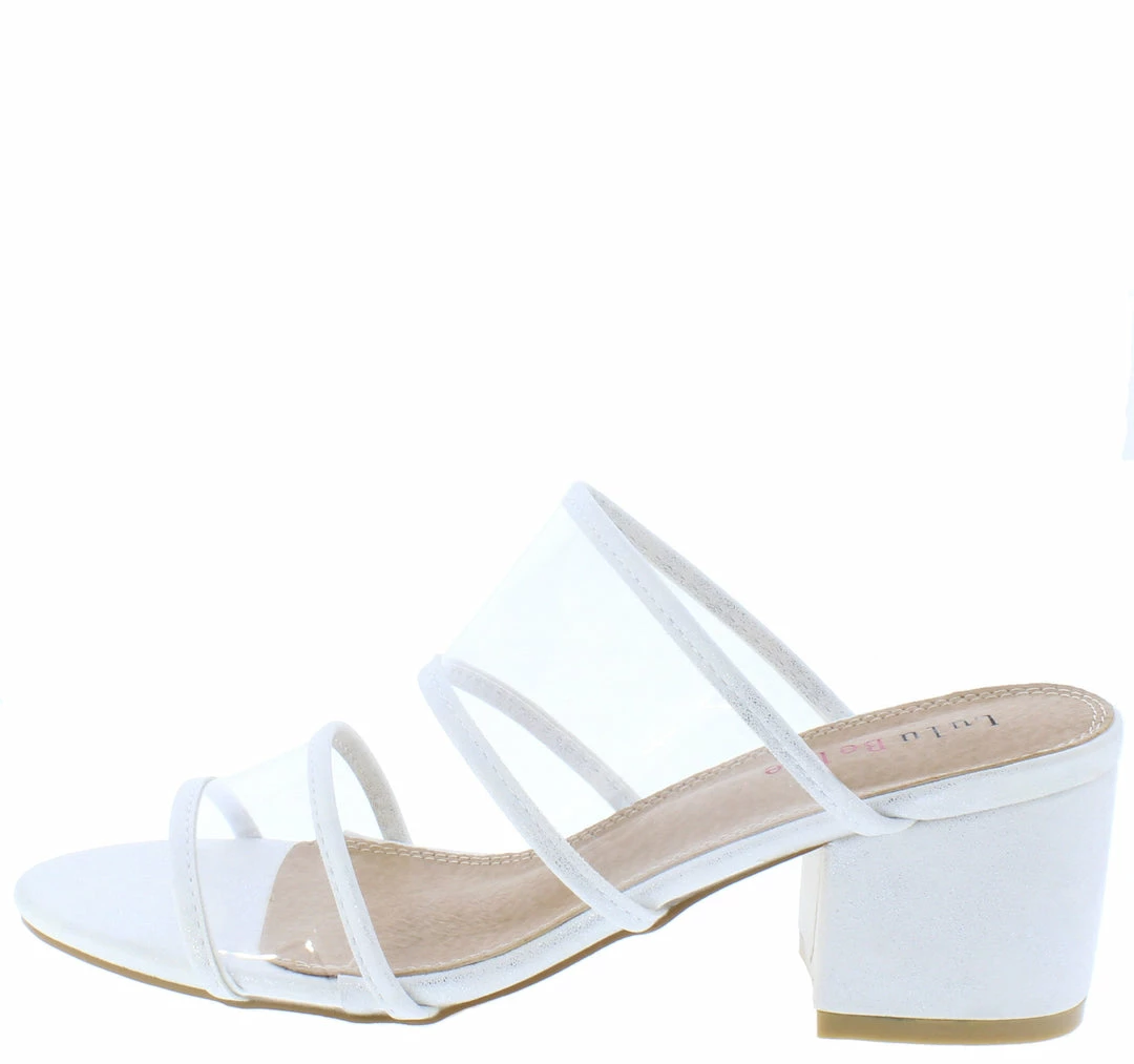 - A lined lucite dual strap upper.