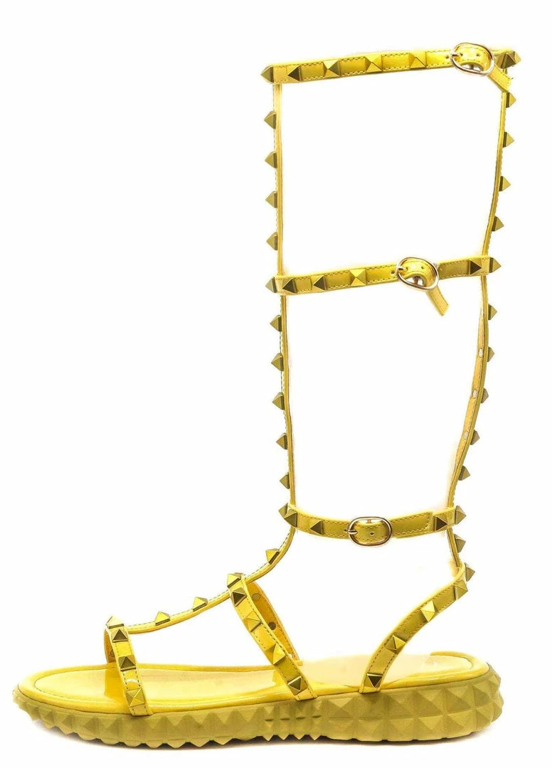 CAPE ROBBIN Boots Thorn Yellow Stud Caged Open Toe Gladiator Boot