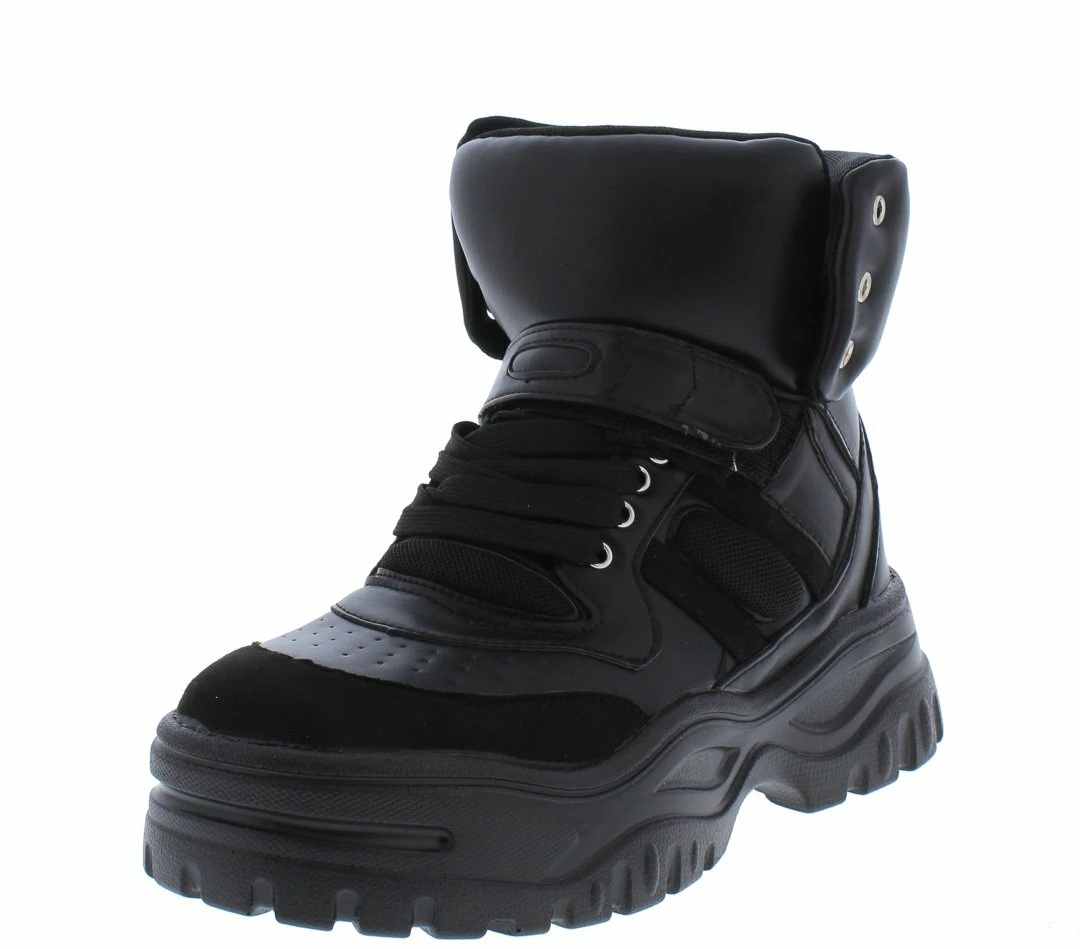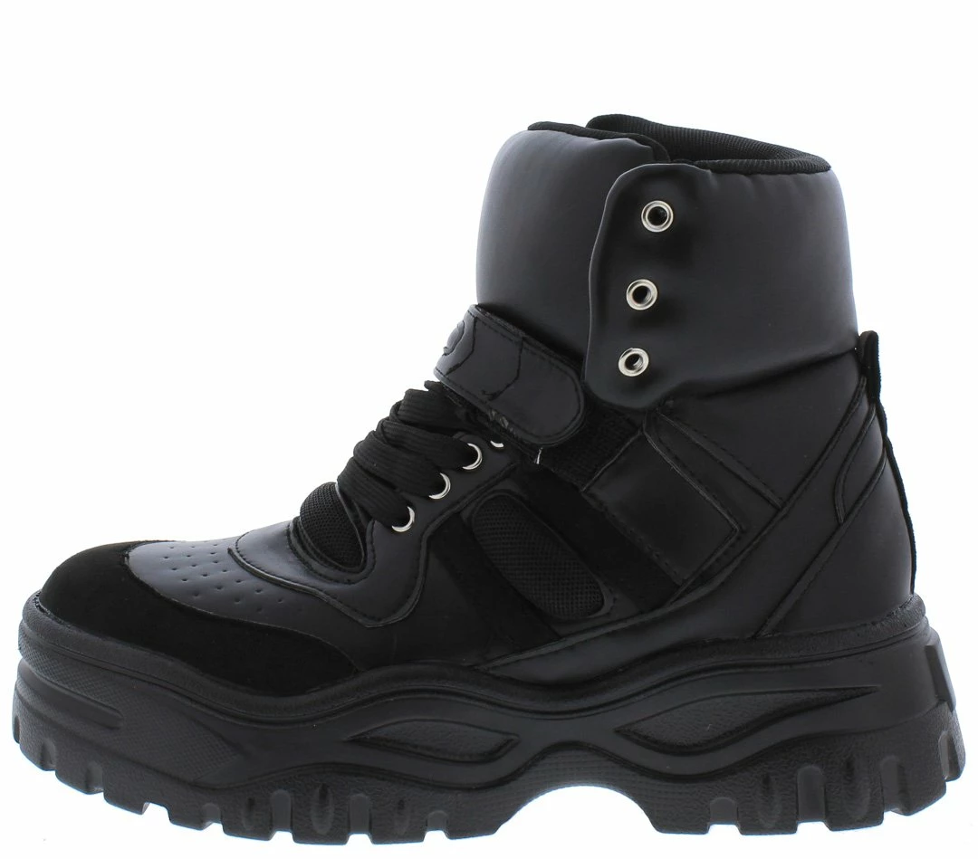 - A lace up front with an ankle high silhouette.
