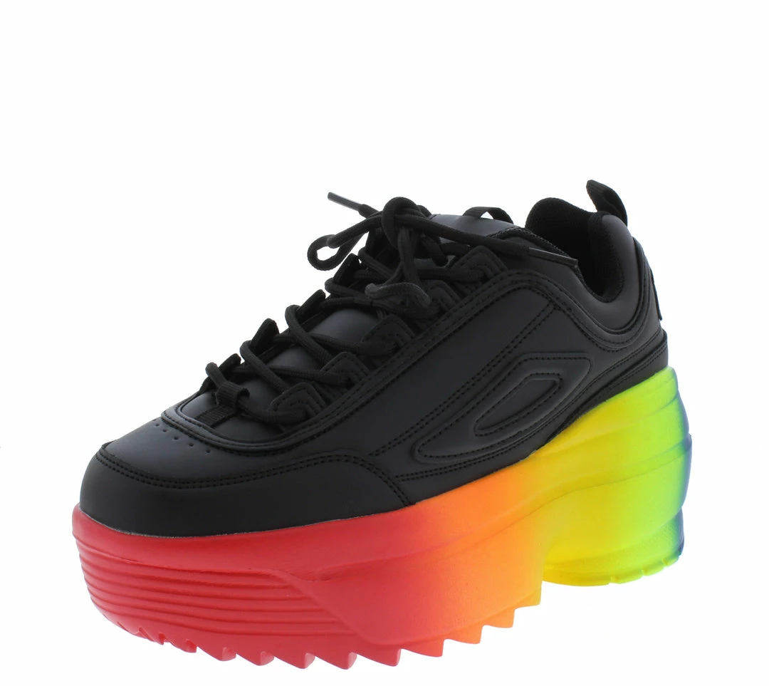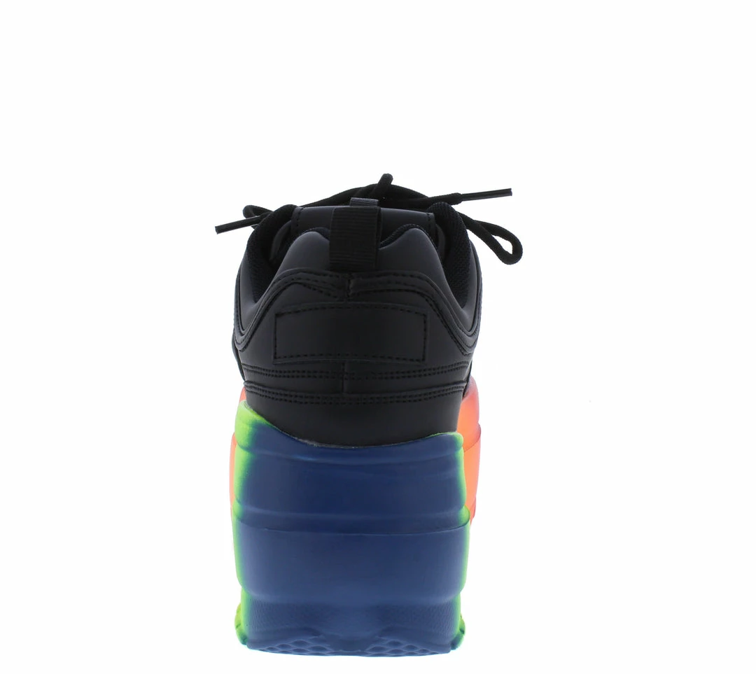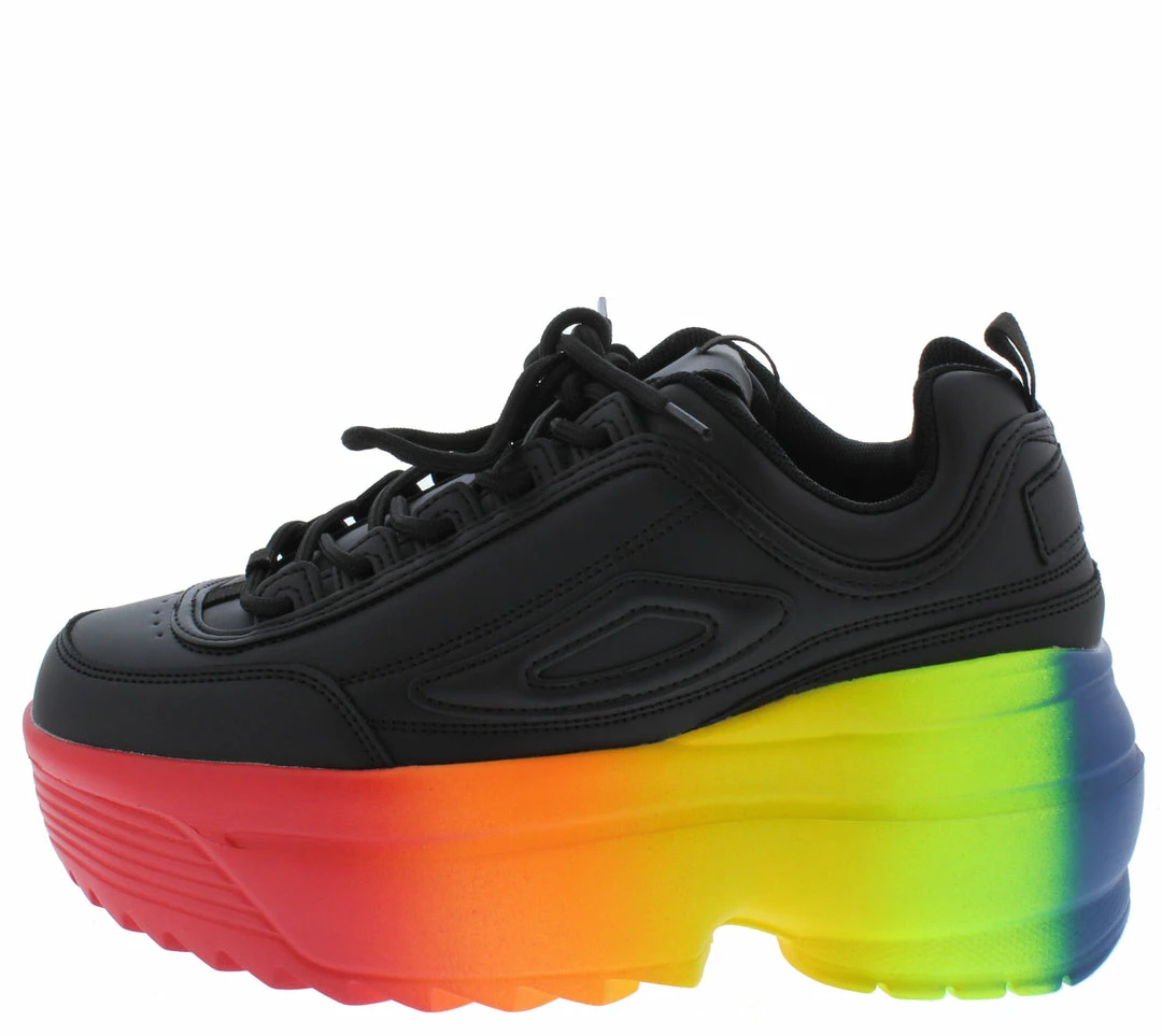 - A rainbow platform sneaker style sole.