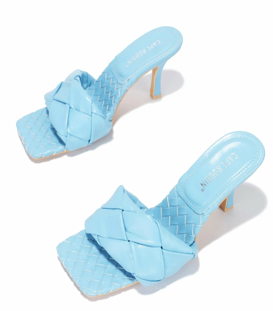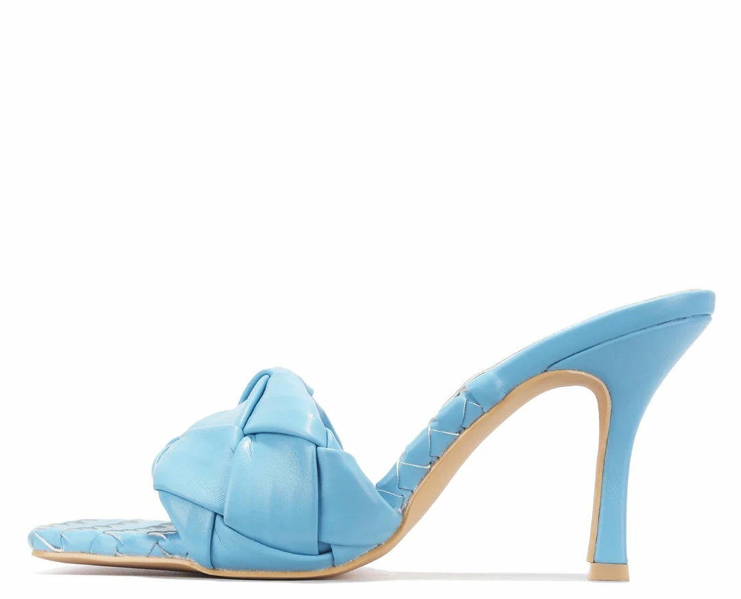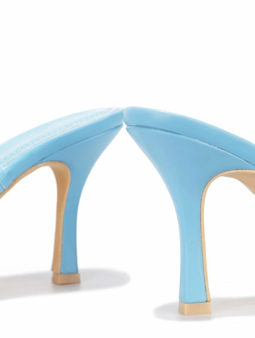 - Features a square open toe paired with an open back.