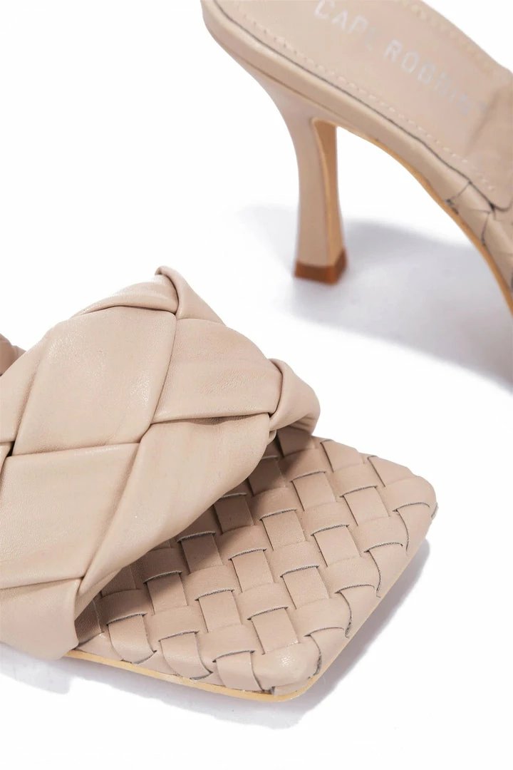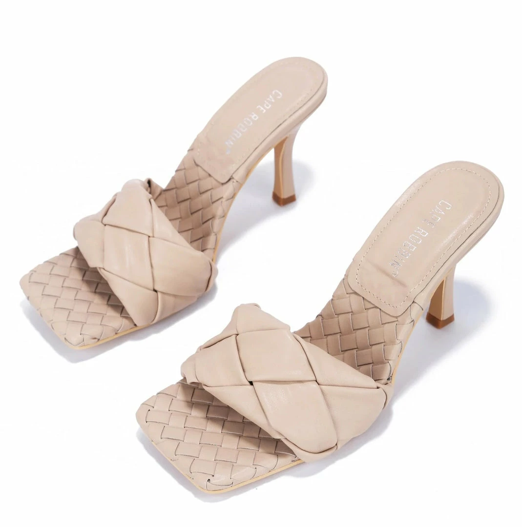 - Features a square open toe paired with an open back.