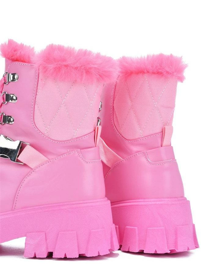 - Faux fur lining and rear shaft quilting.