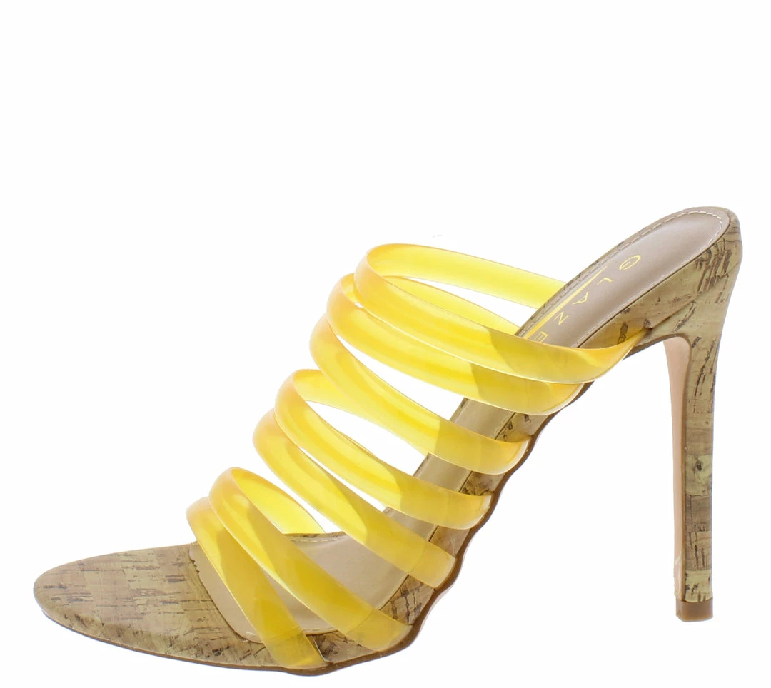 - A cork single style sole and stiletto heel.