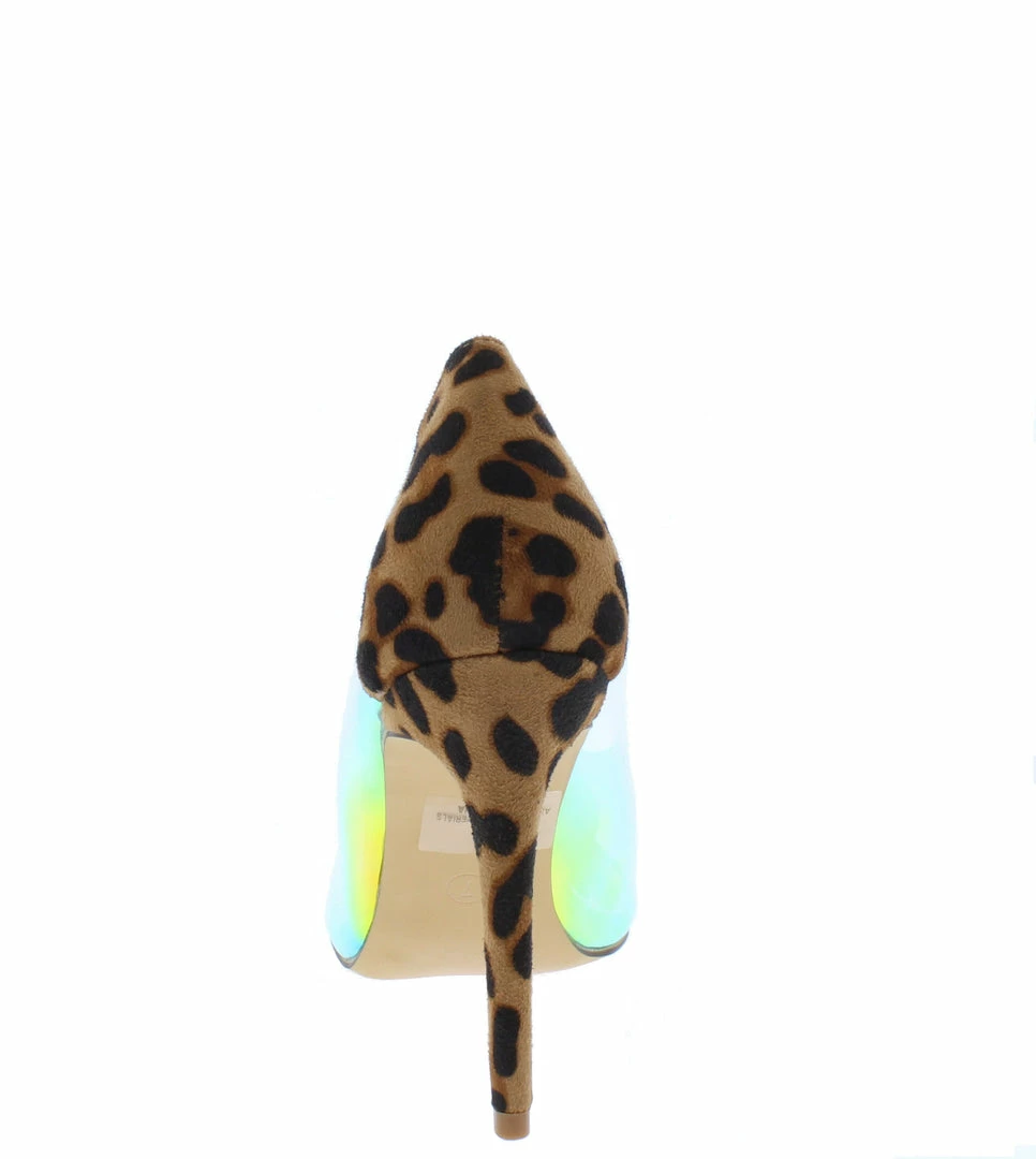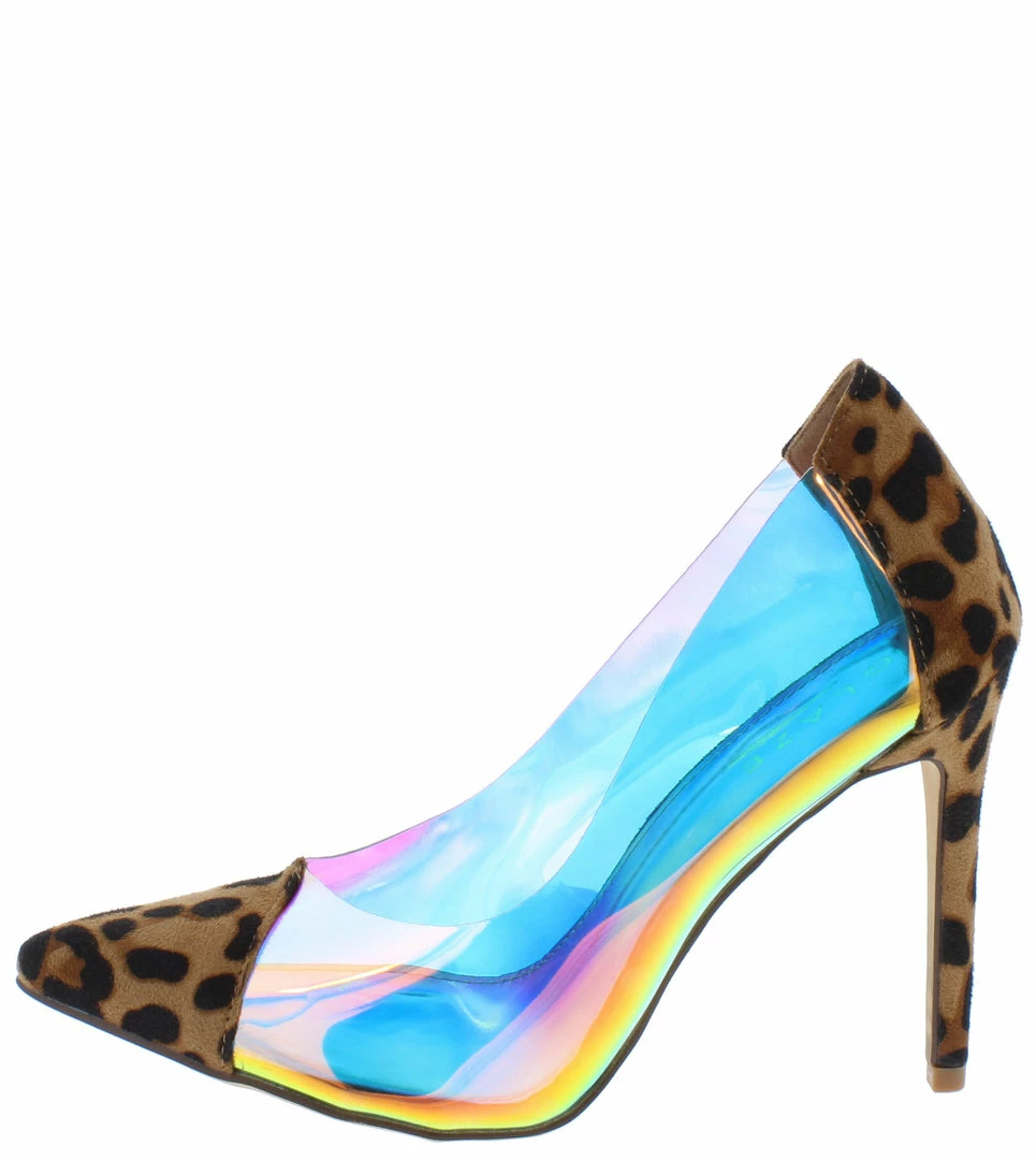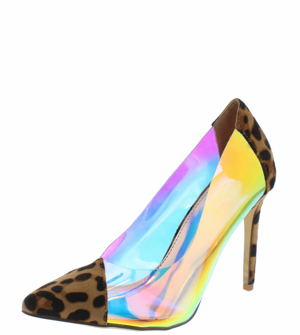 - An iridescent lucite upper.