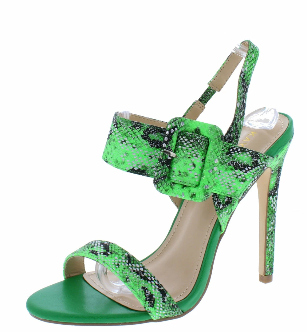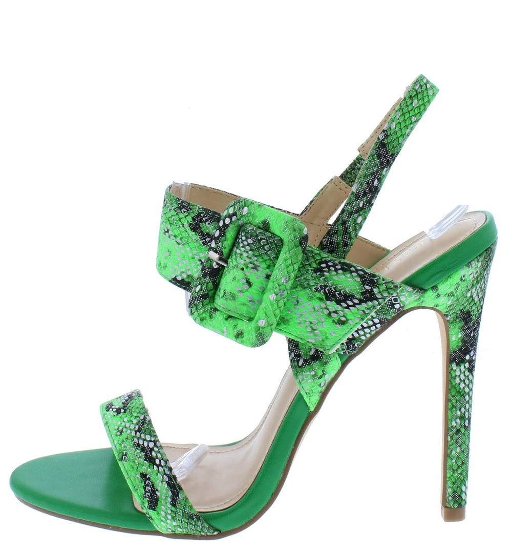 - Features an open toe paired with a slingback.