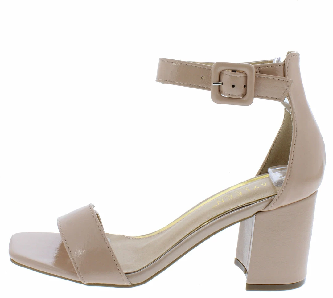 - Single sole styling and a short block heel.