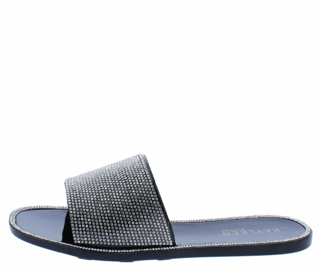 - A flat, single style sole and slide on construction.