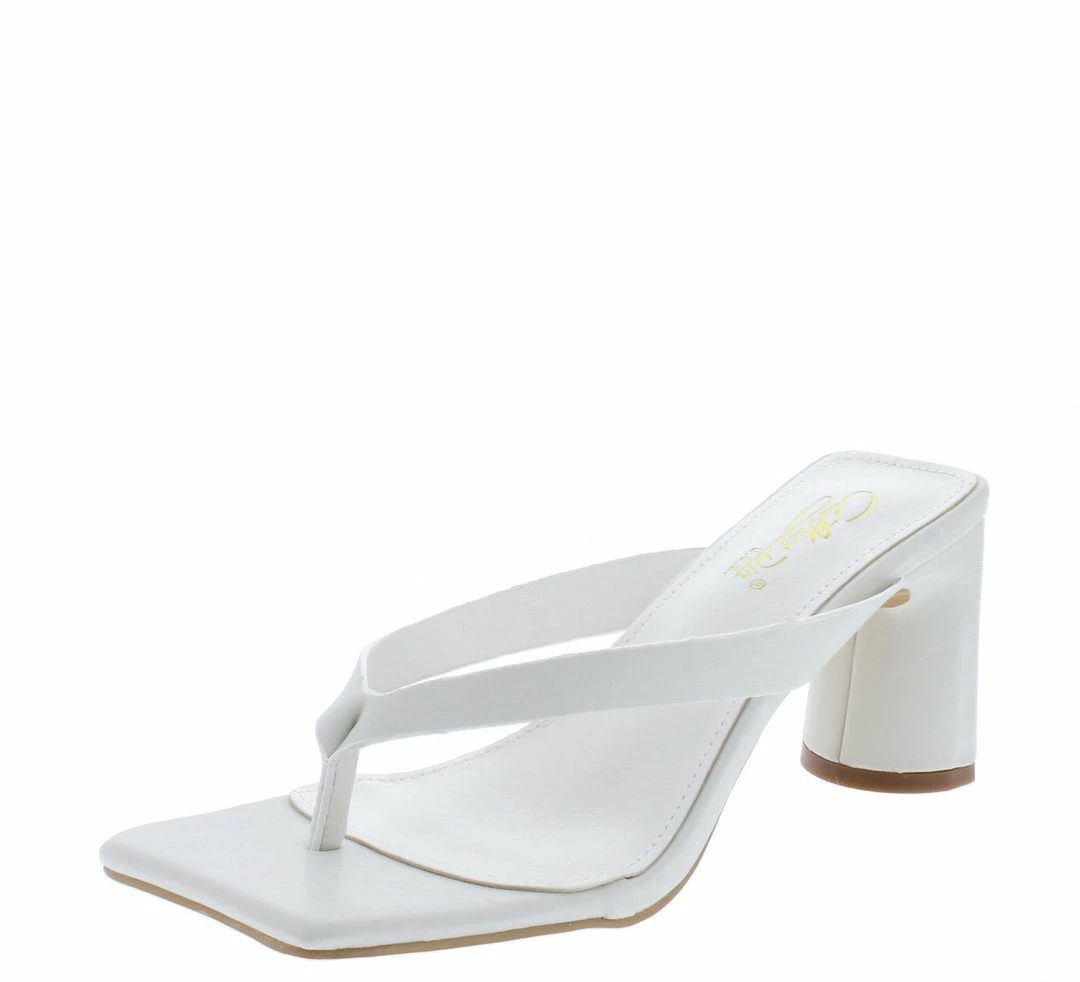 - Features a square open toe paired with an open back.