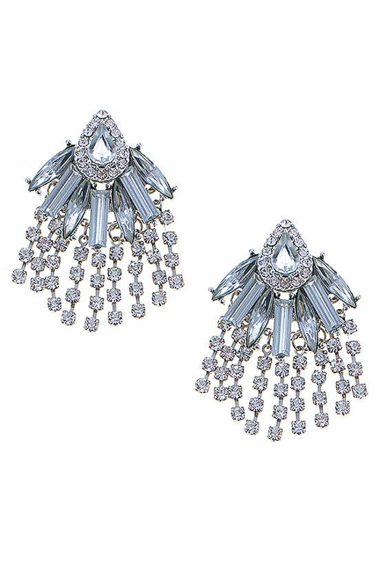 FASHION BELLA Crystal Silver Cluster Fringe Earrings