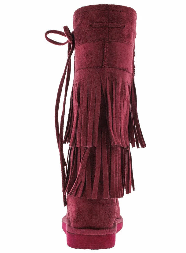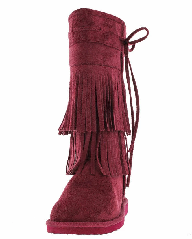 - Features a double tiered fringe detailing and bow on side of boot