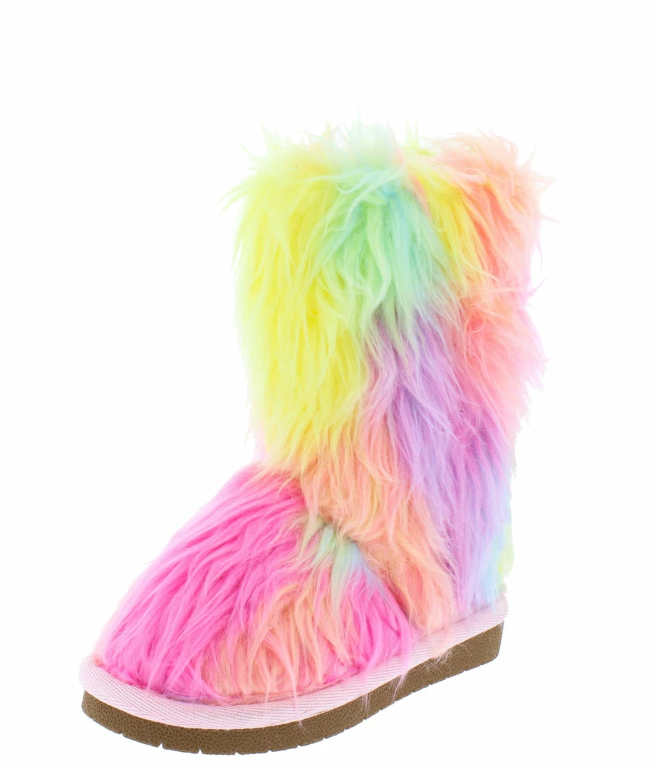- a faux fur upper and pull on construction.
