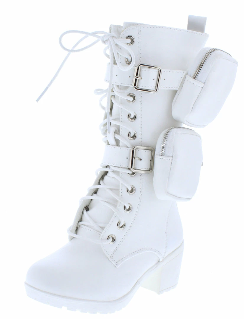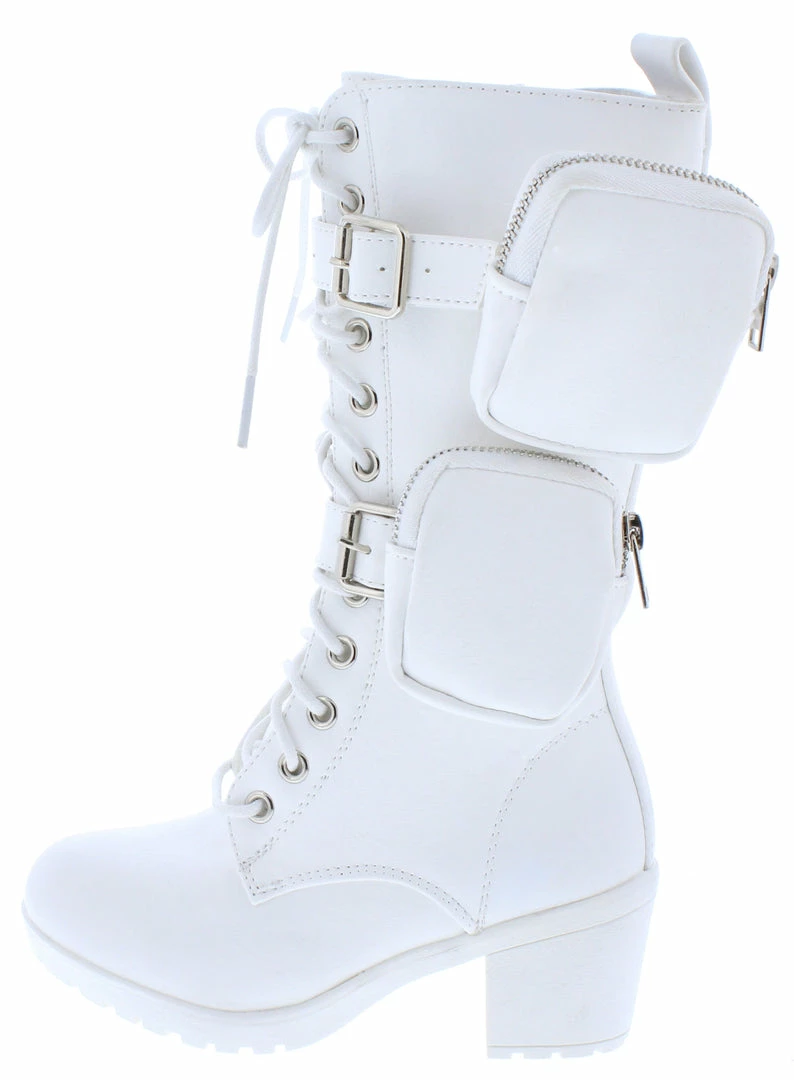 - A lace up front and inner side zipper closure.
