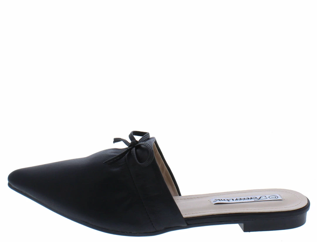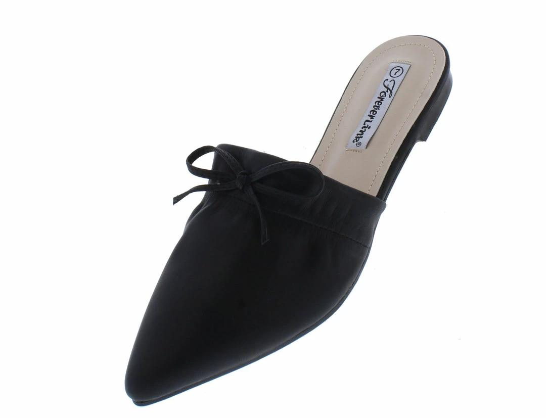 - Features a pointed toe paired with an open back.