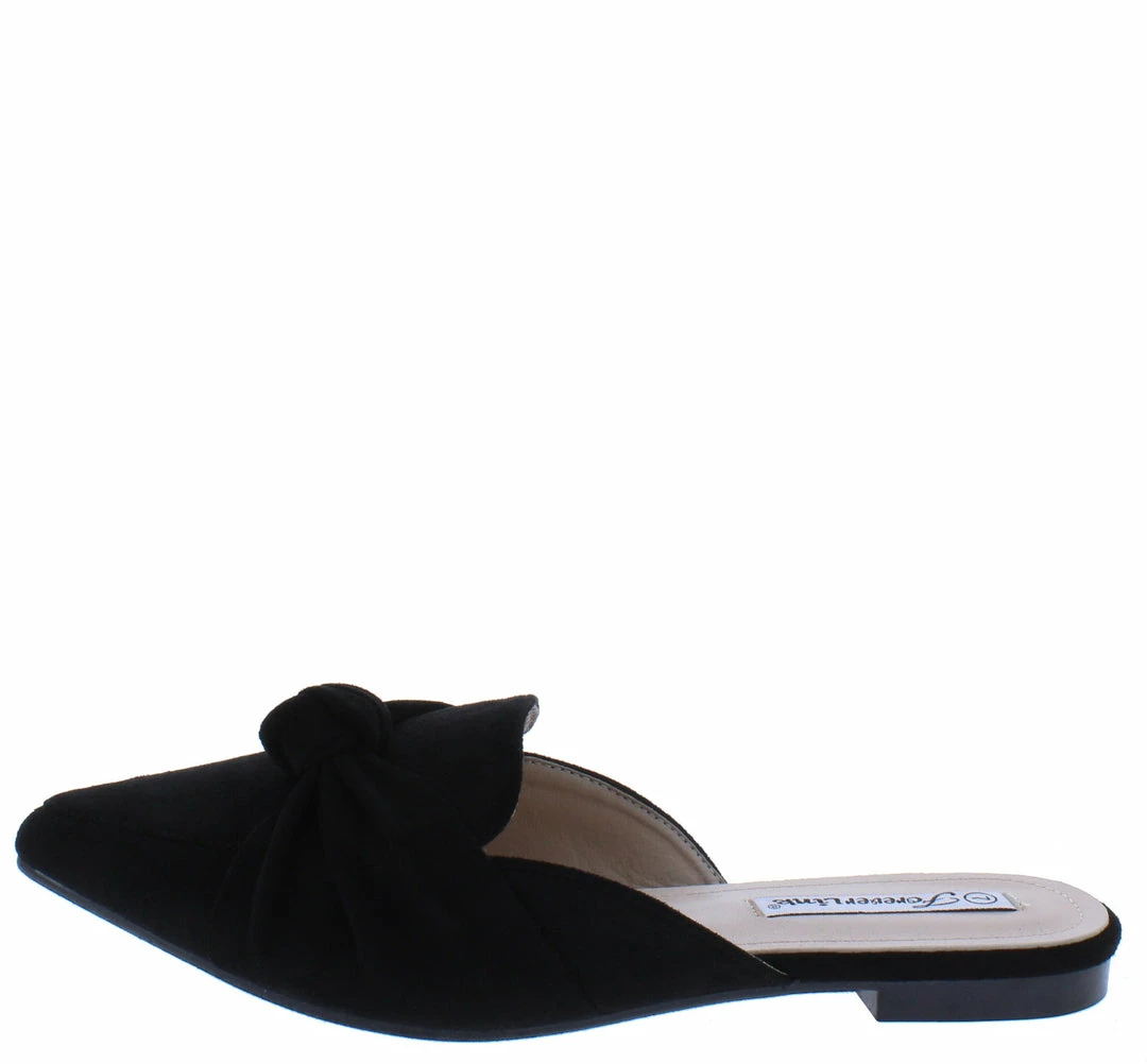 - Features a pointed toe paired with an open back.