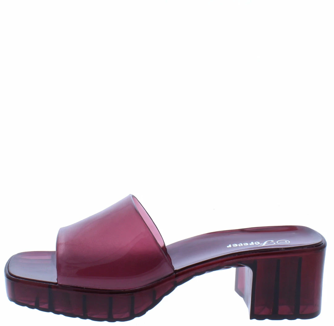 - Features a squared open toe paired with an open back.