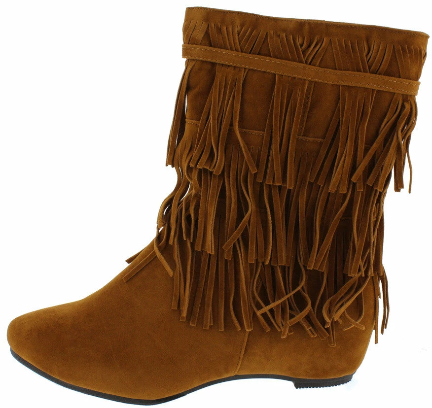 -  Features a faux suede upper with multiple layers of fringe.Â