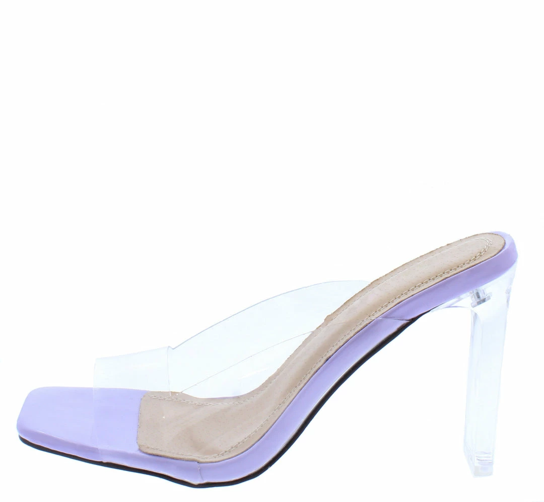 - Features a square open toe paired with an open back.