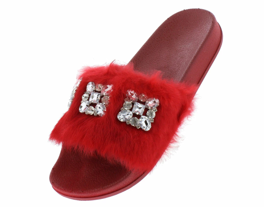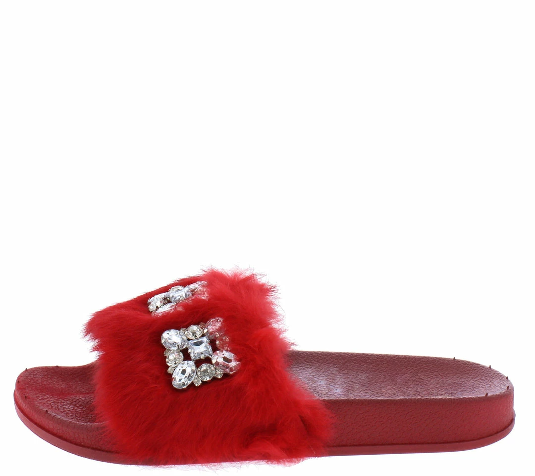 - A jeweled faux fur upper.