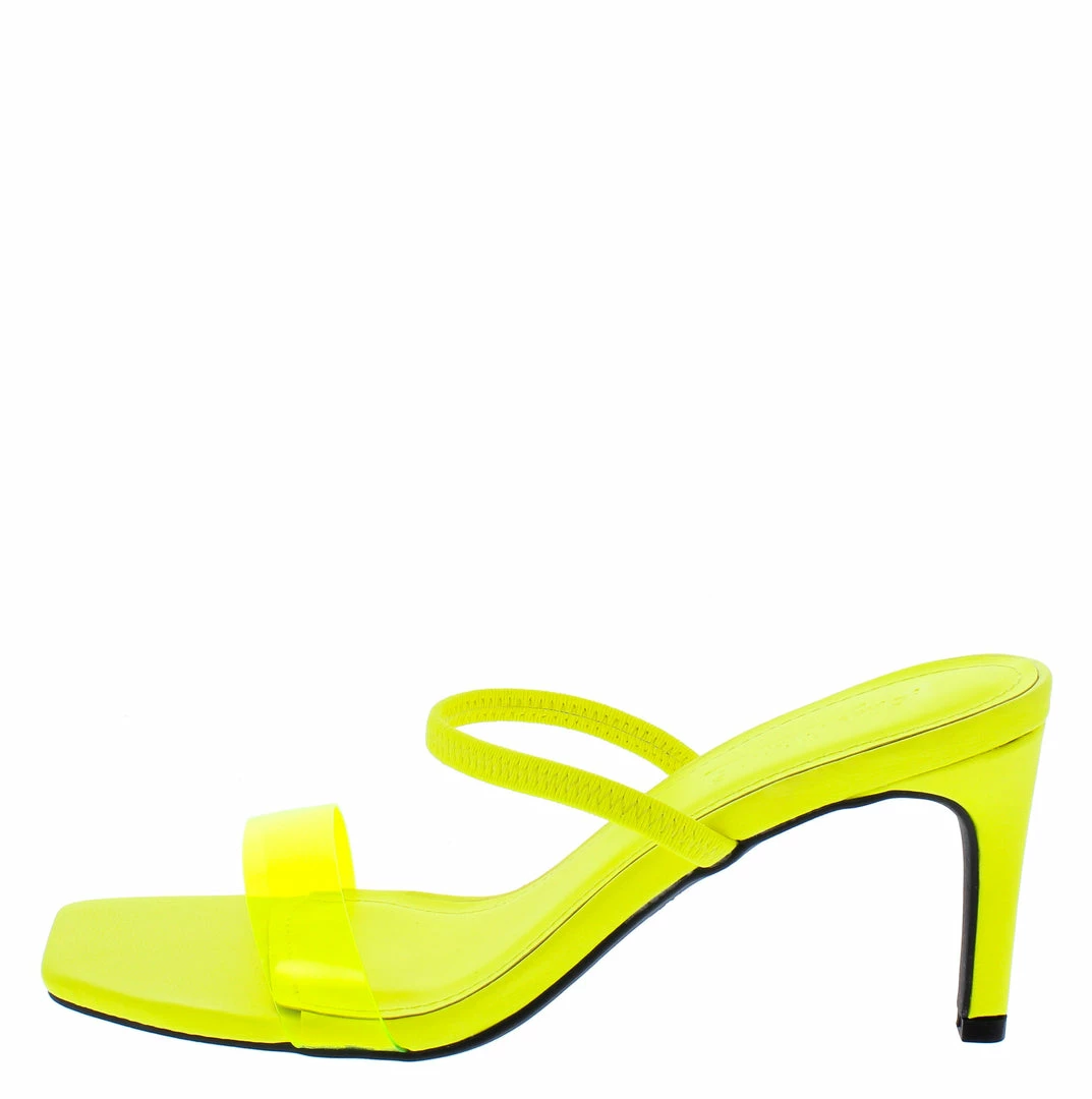 - A lucite toe strap and thin upper strap.
