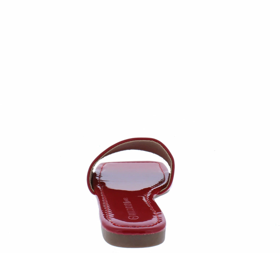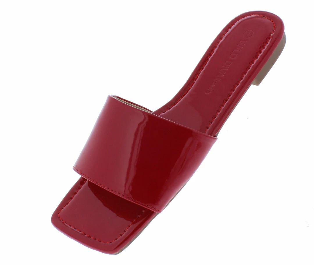 - Features a square open toe paired with an open back.