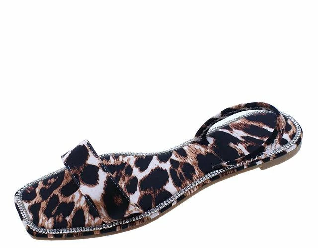 - A flat, single style sole and slide on construction.