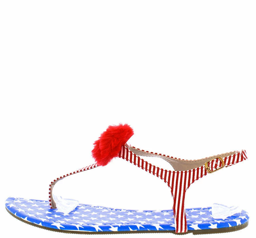 - Features a fuzzy pom pom centered on thong strap and ankle strap.Â
