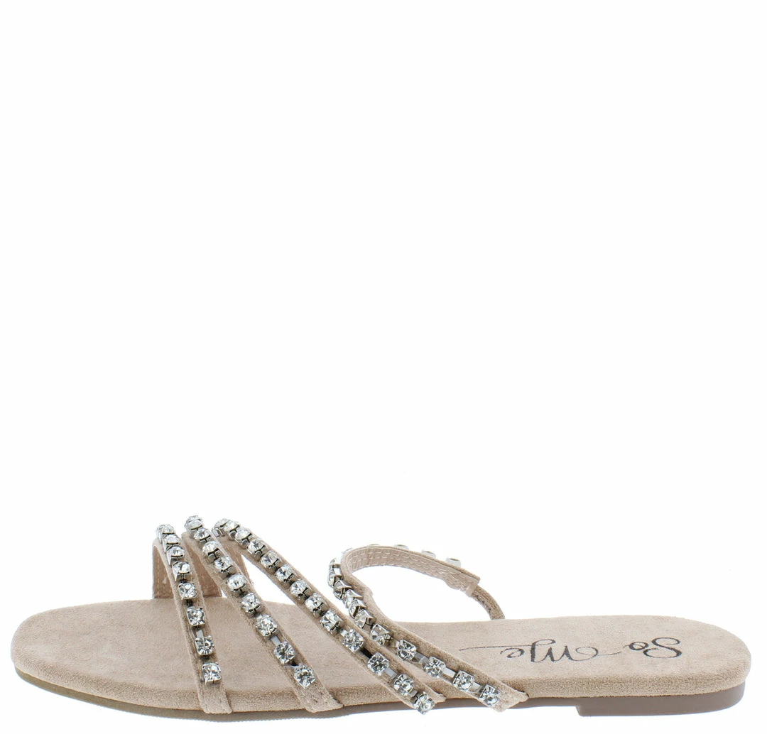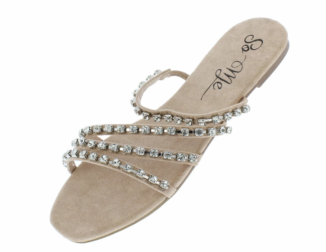 - A strappy rhinestone upper.