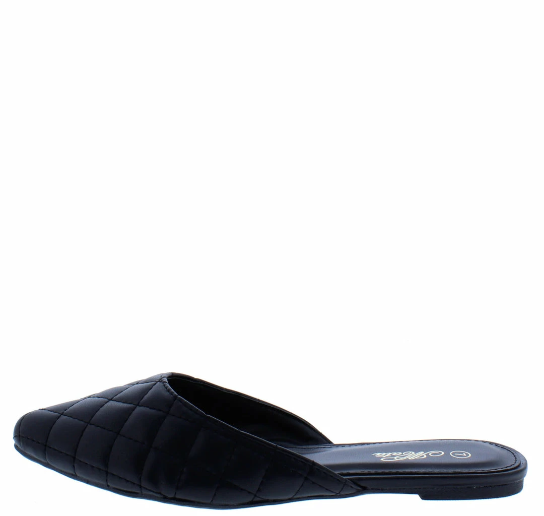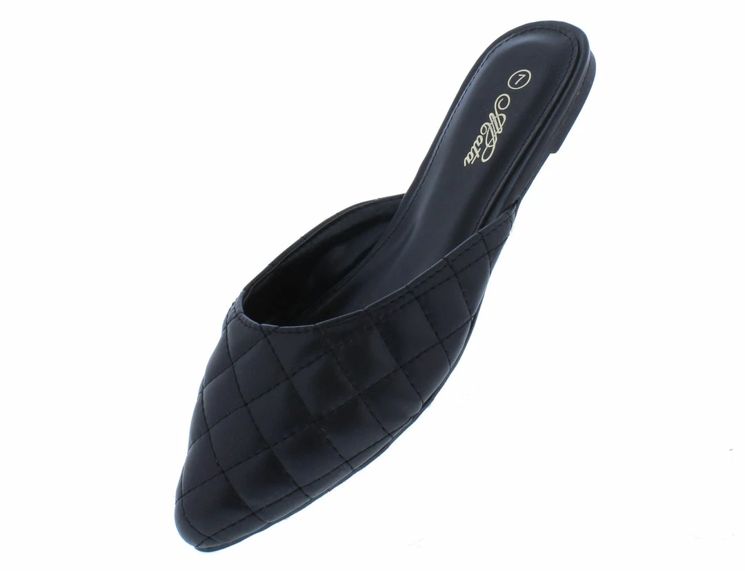 - A flat, single style sole and slide on construction.