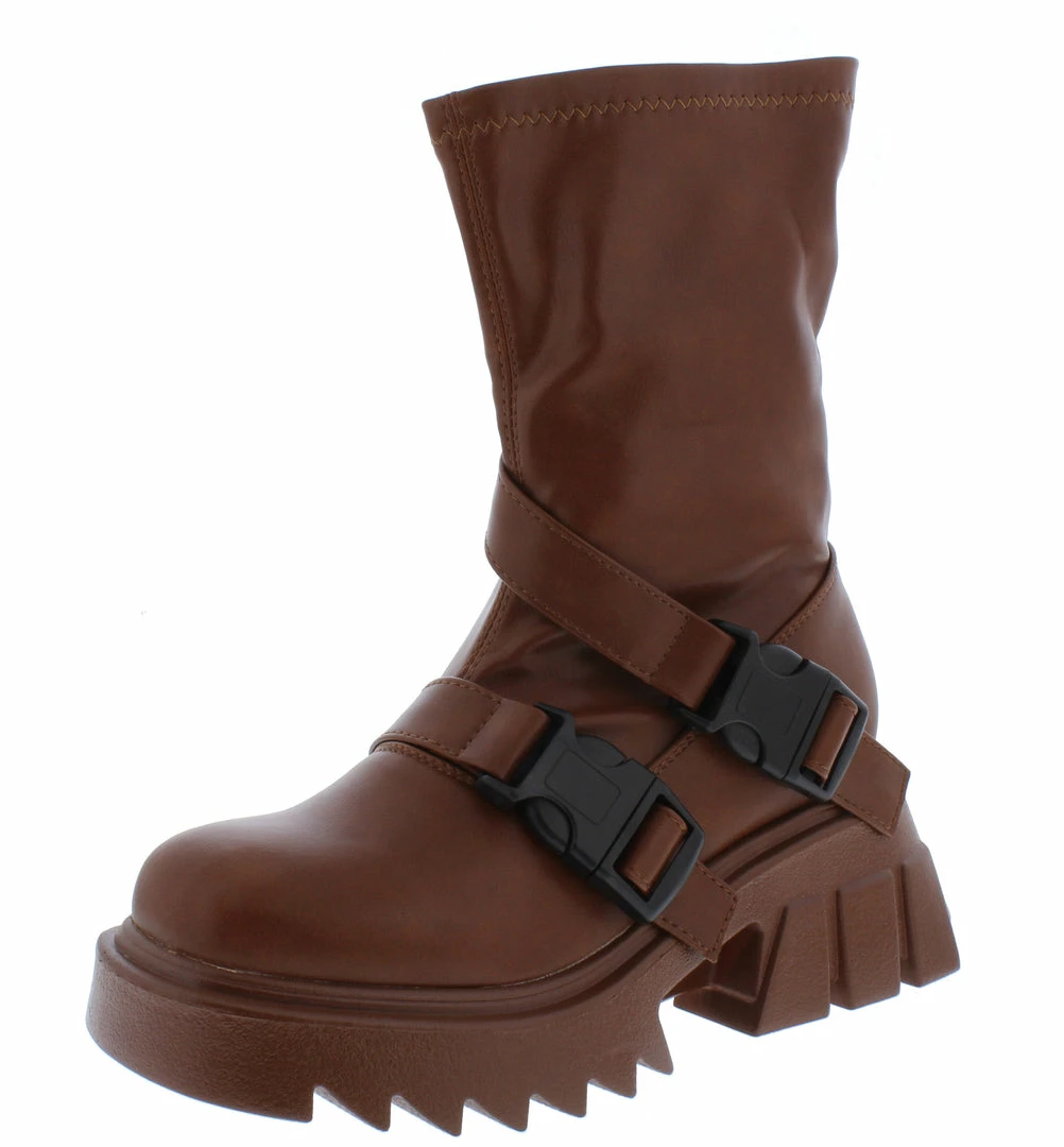 - A dual buckle strap upper and inner side zipper closure.