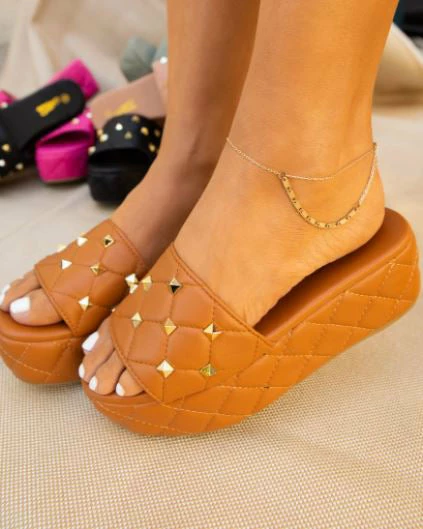 - A platform quilted sole and subtle wedge heel.