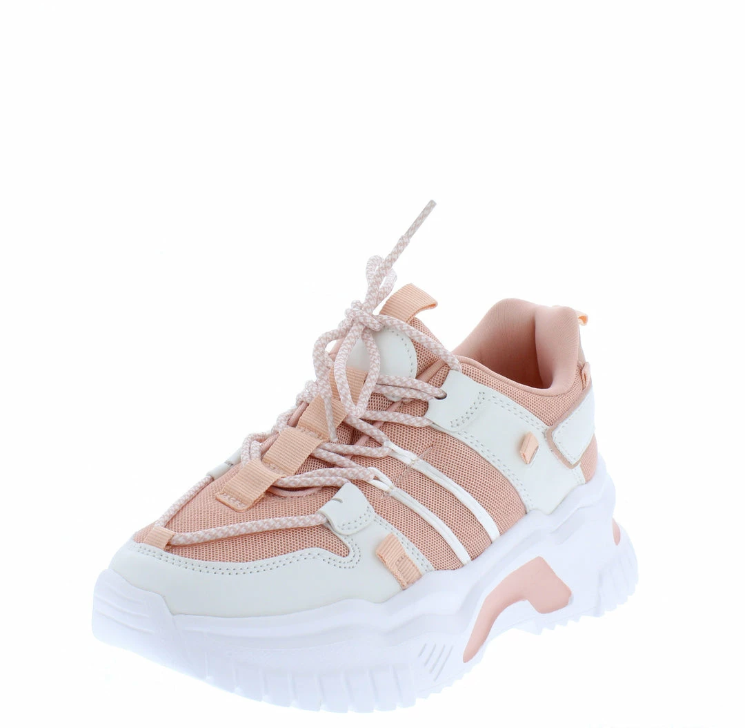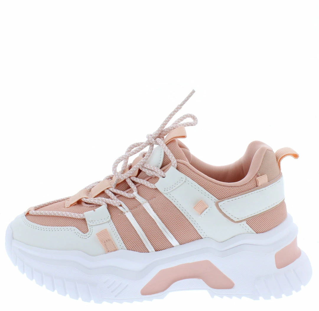 - A low platform, tapered sneaker style sole.