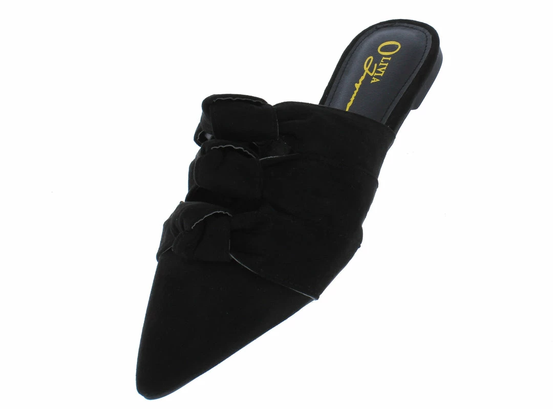 - Features a pointed toe paired with an open back.