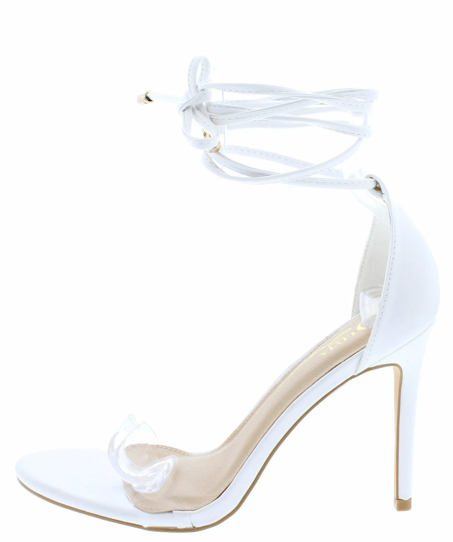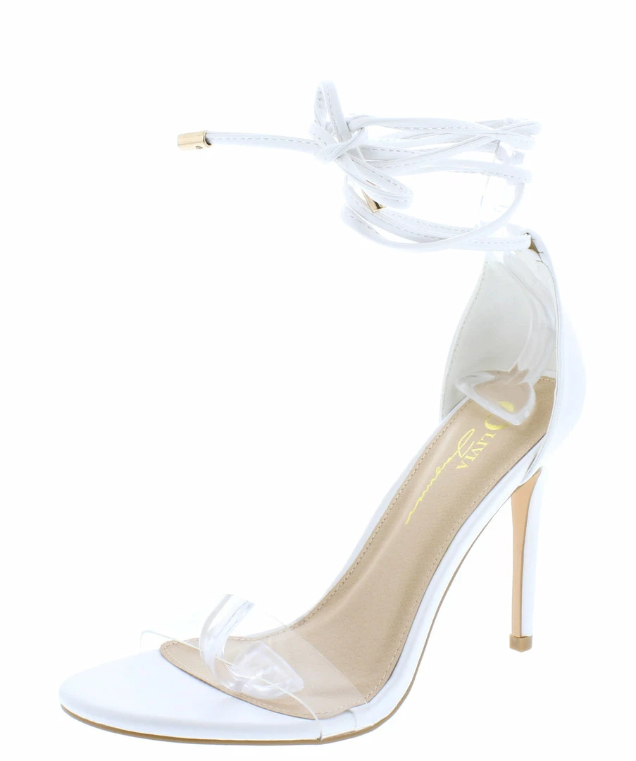 - A lucite toe strap and ankle wrap straps.