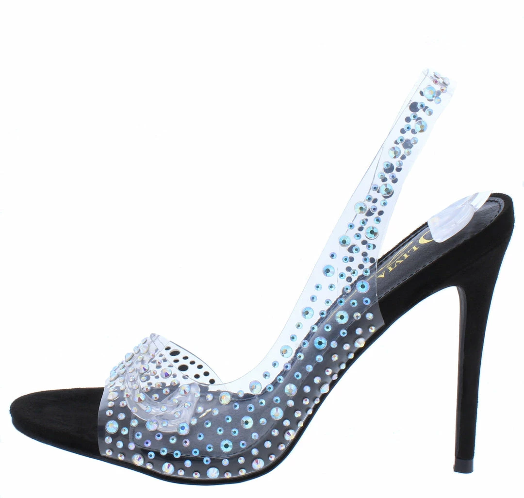 - A jeweled clear lucite upper.
