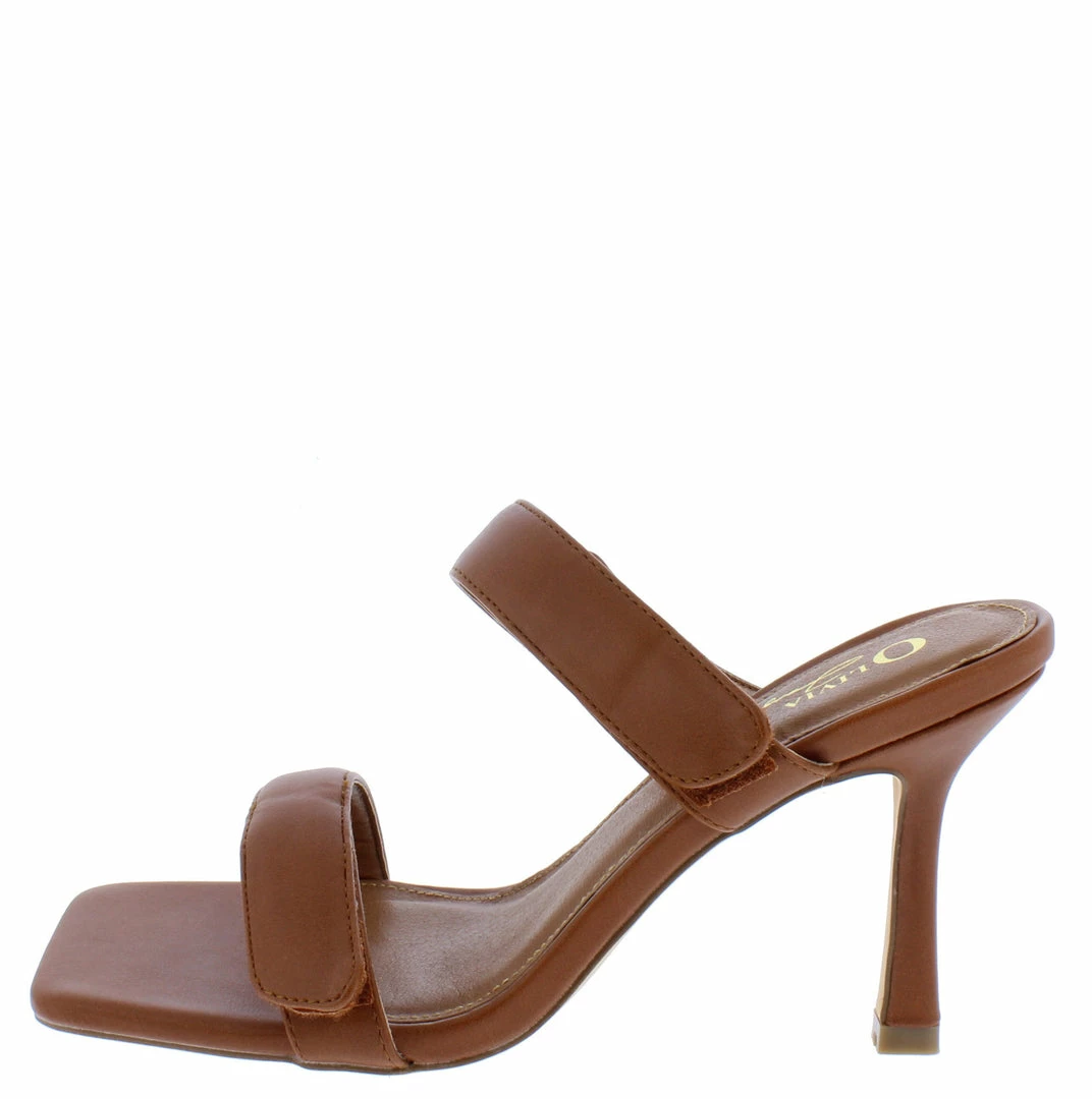 - Features a square open toe paired with an open back.