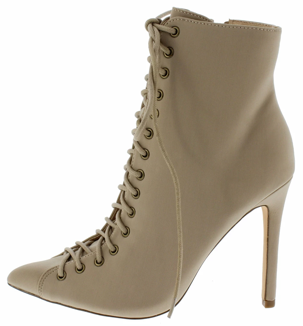 - A lace up front and an inner side zipper closure.