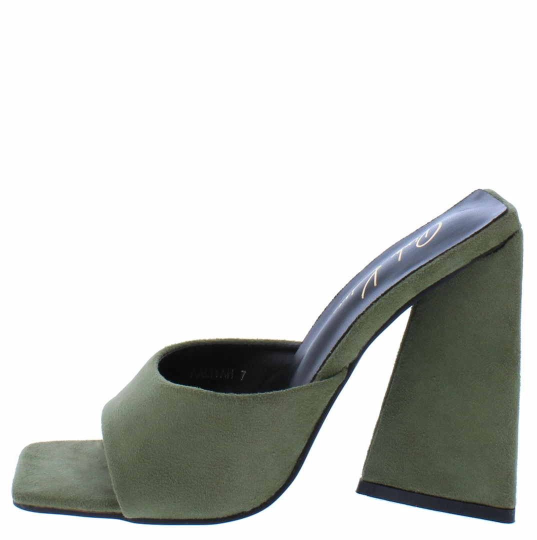 - Features a square open toe paired with an open back.