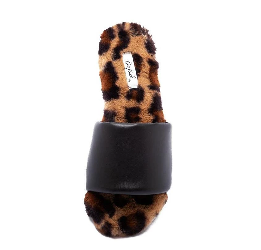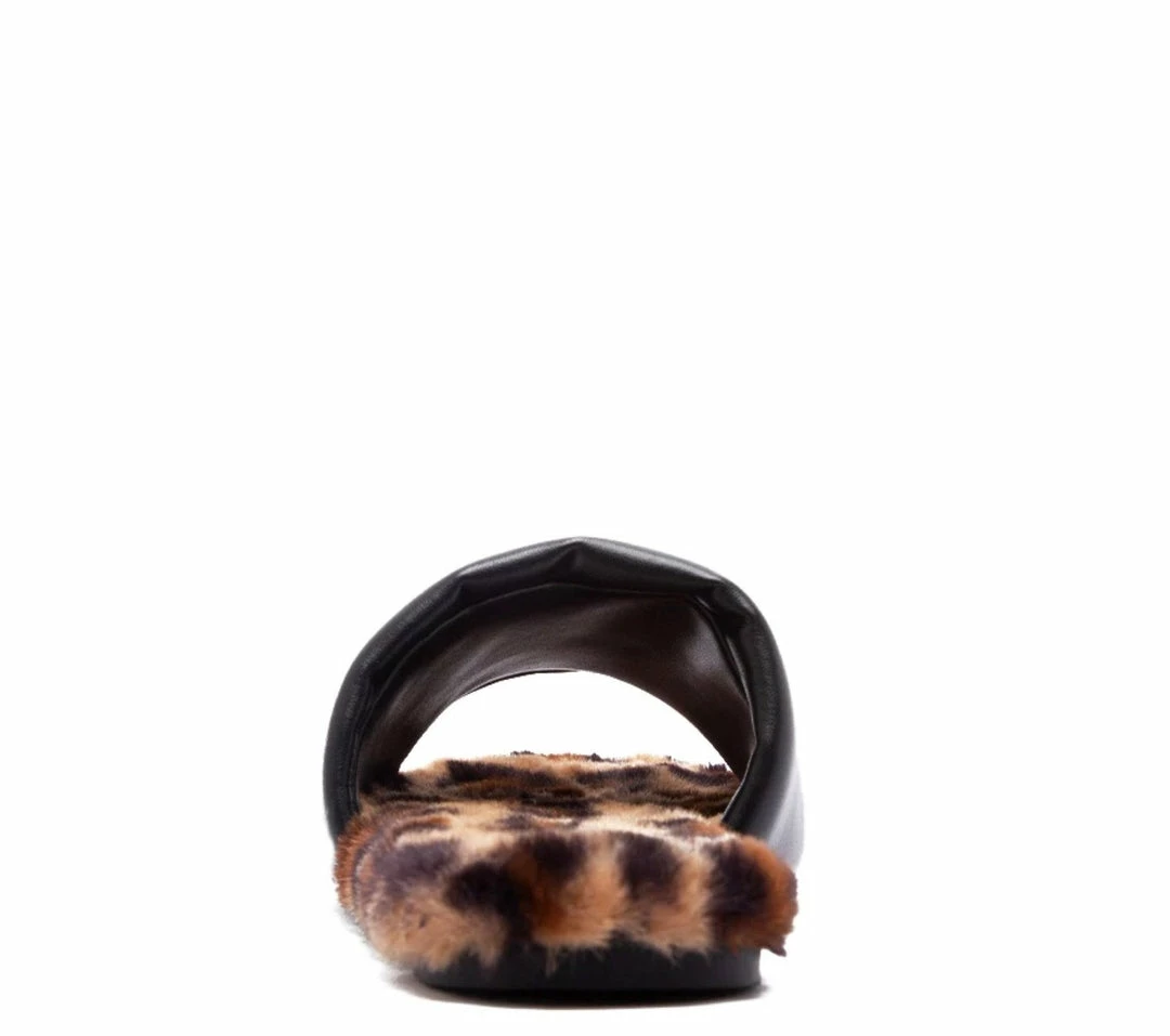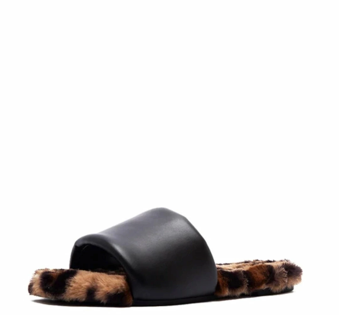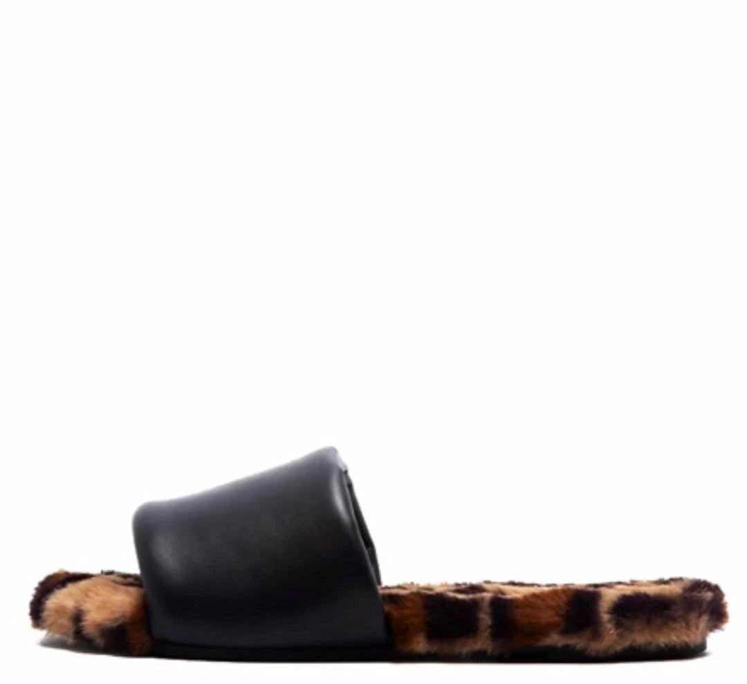 - A flat, printed faux fur sole.