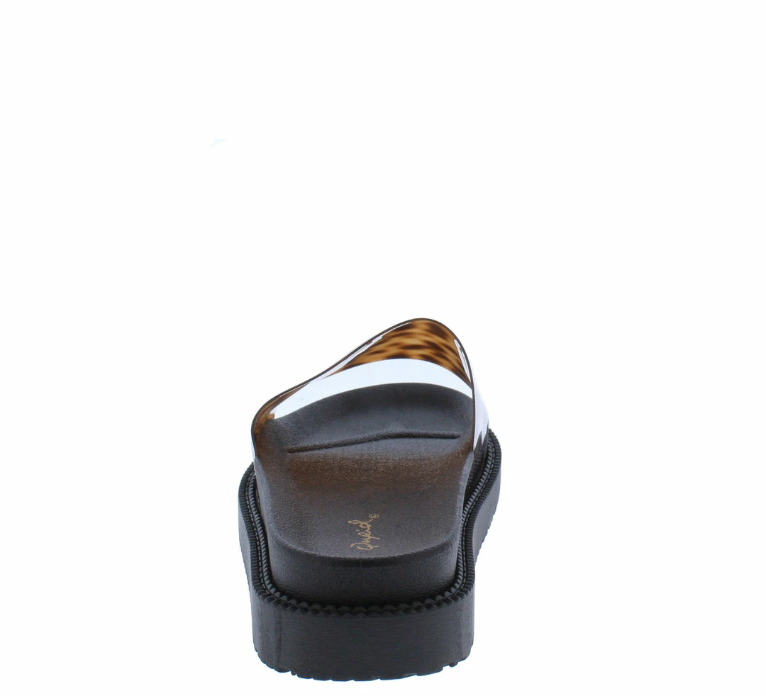 - A lucite upper with slide on construction.
