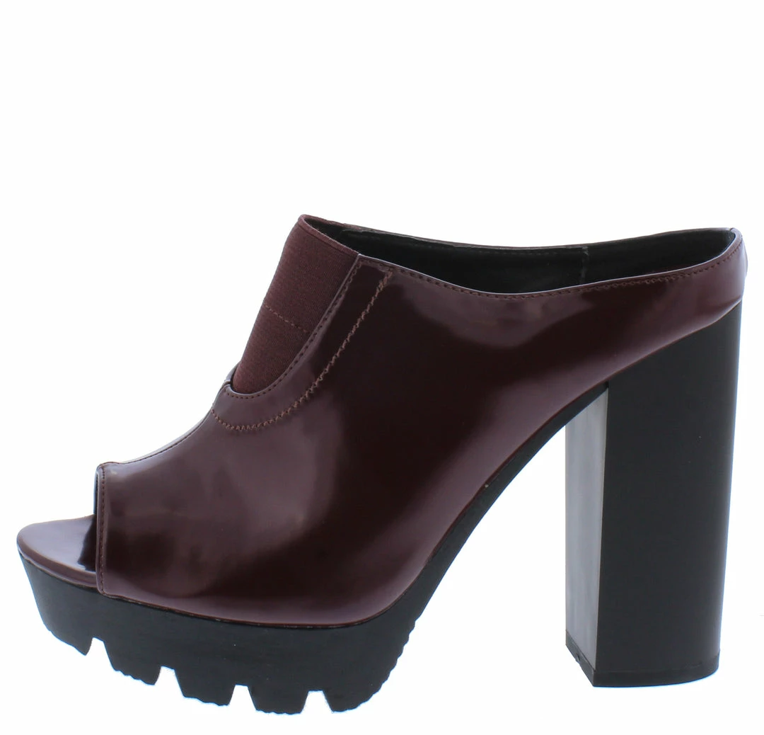 - A chunky lug sole and tall block heel.