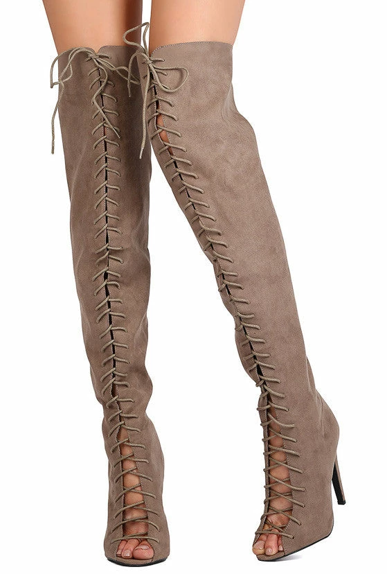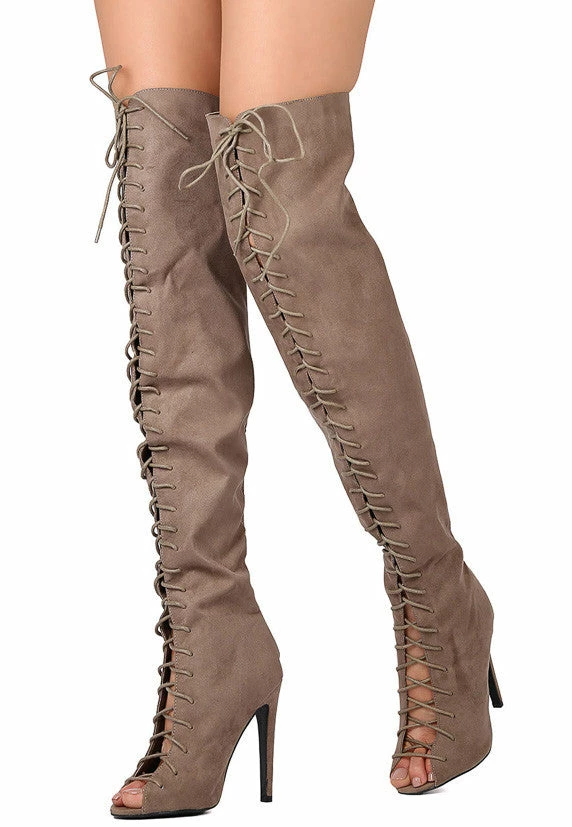 - Features a thigh high design covered in a suede like texture.