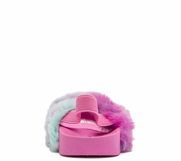 - A faux fur cross strap upper.