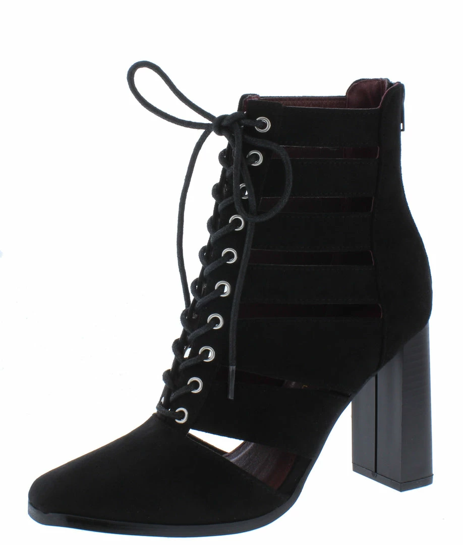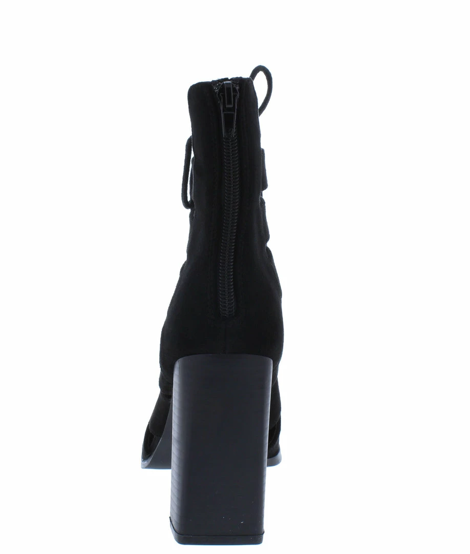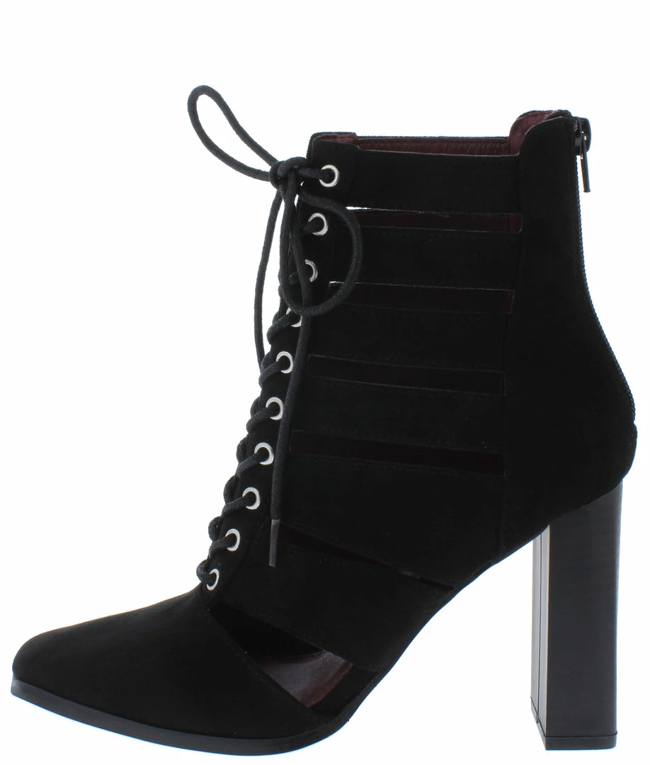 - A caged upper and lace up front.