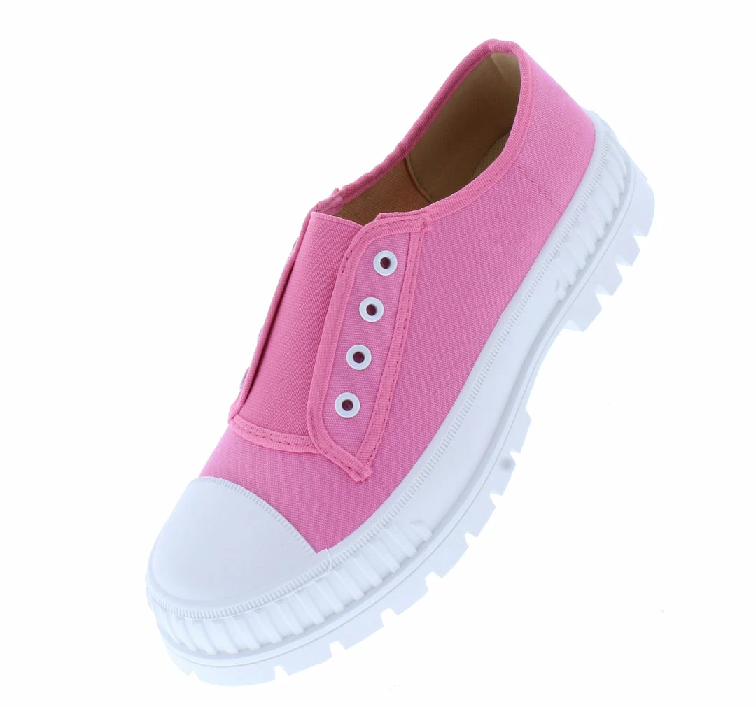 - An eyelet upper with slip on construction.