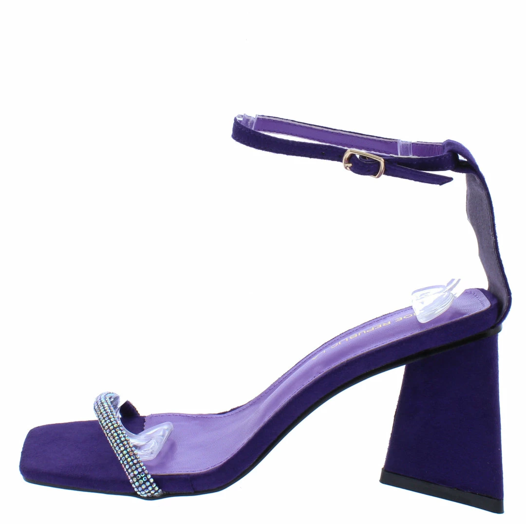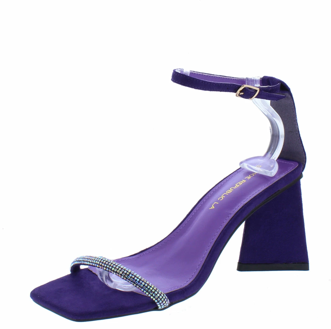 Shoe Republica Neeky Violet Embellished Open Toe Ankle Strap Triangle Heel