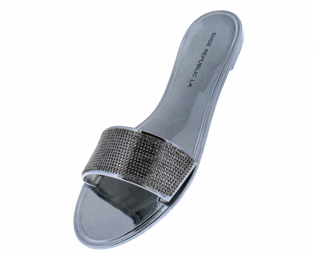 - A patent and rhinestone upper.