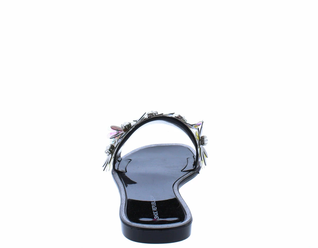 - Features an open toe paired with an open back.