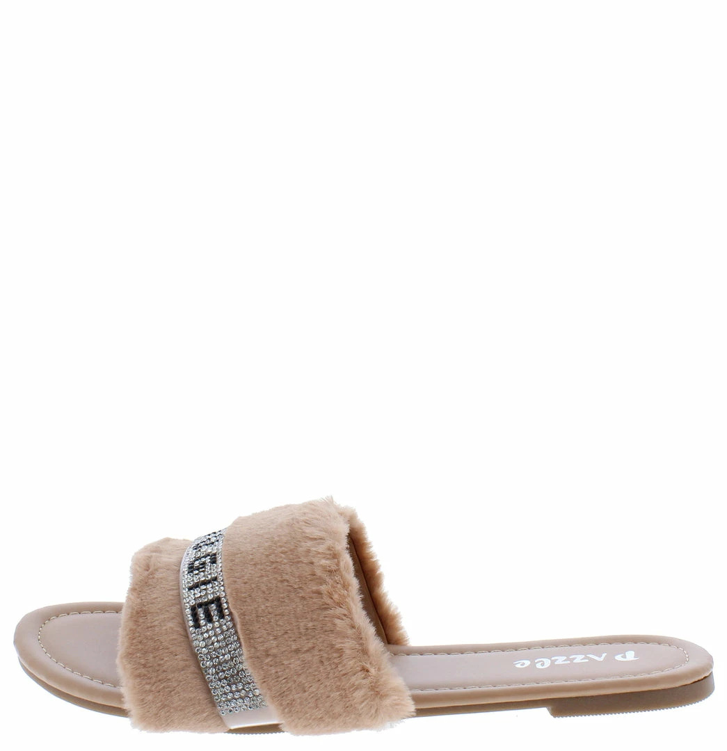 - A rhinestone faux fur upper.